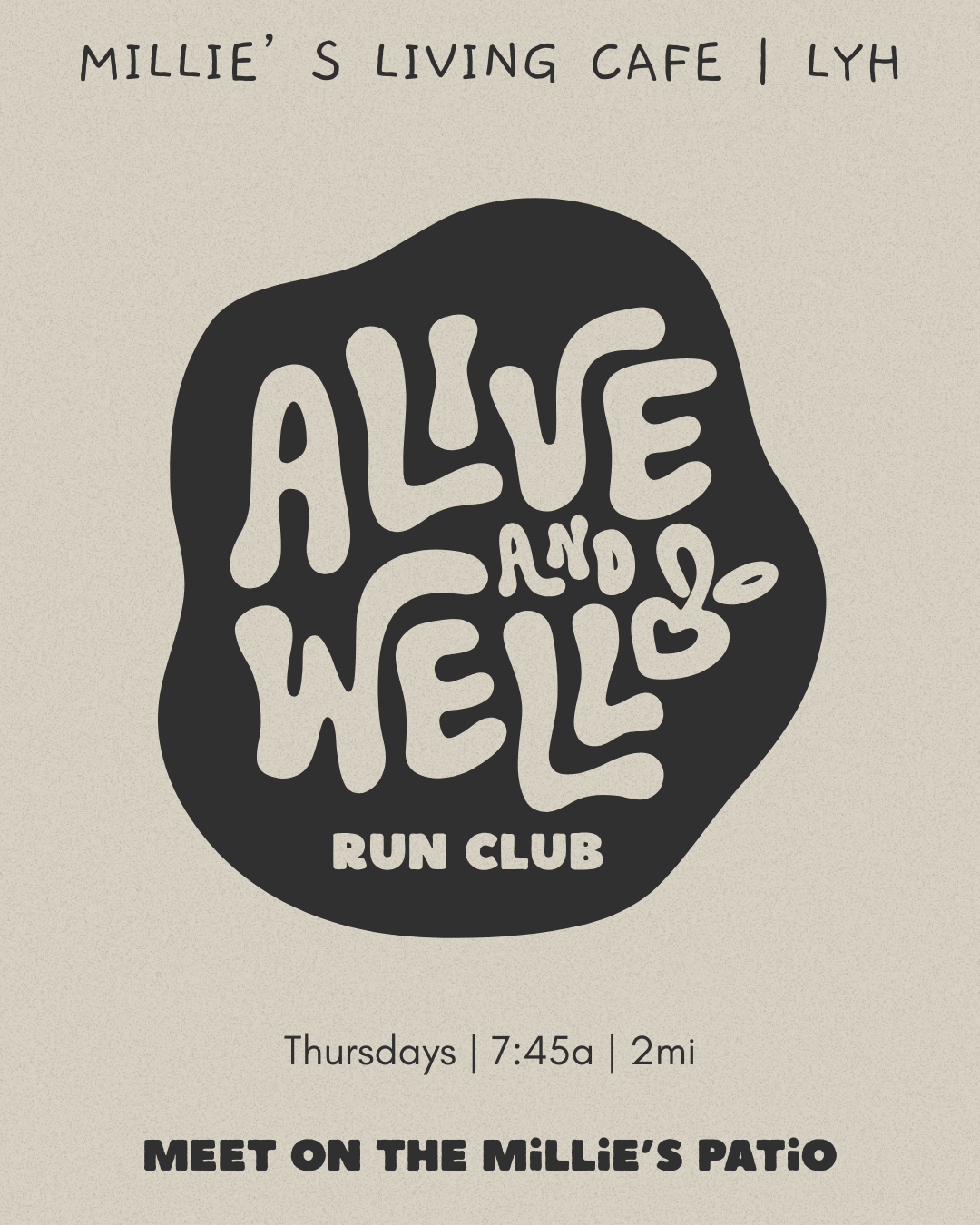 The group will be running 2 miles in Wyndhurst around a 9:30 pace being led by some of our Millie’s gals!